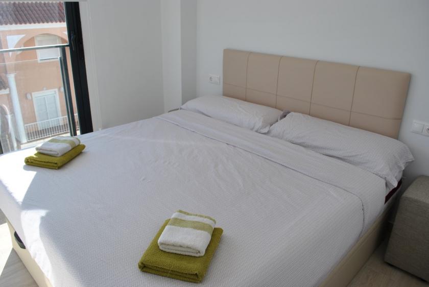 El primer dormitorio tiene una cama grande de 1.80 metros de ancho y un baño privado con ducha, lavabo y aseo.